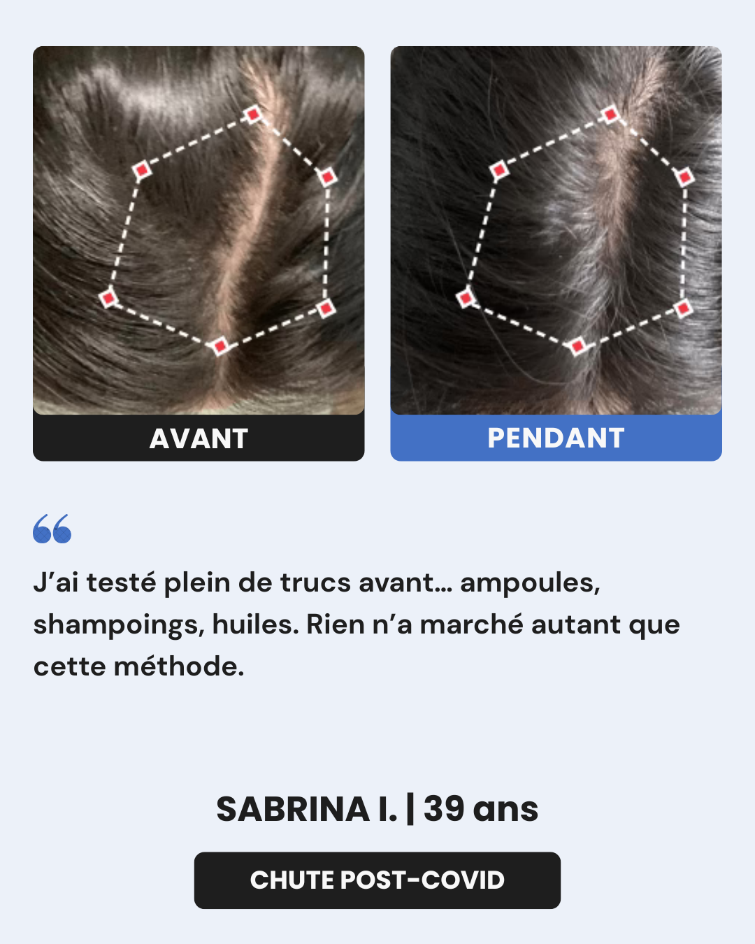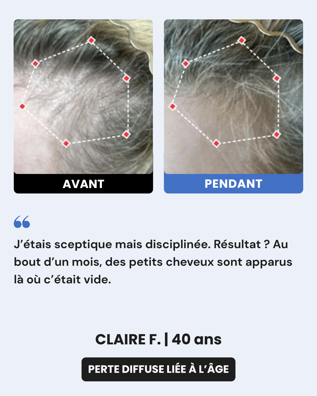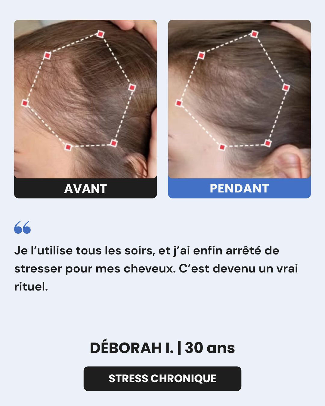 👉 Après des recherches approfondies et rigoureuses menées par l'Institut National de la Santé, notre technologie a été confirmée comme une solution efficace pour la repousse des cheveux.