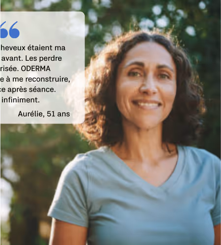 DEPUIS SA CRÉATION, ODERMA CHANGE LA VIE DE MILLIERS DE FEMMES. NOTRE MISSION : LES ACCOMPAGNER VERS UNE CHEVELURE RETROUVÉE, POUR QU'ELLES RAYONNENT À NOUVEAU DE BEAUTÉ, CONFIANCE ET ESTIME D'ELLES-MÊMES.
